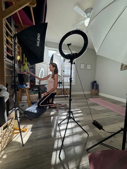 Typical set up for a great Zoom class, a combination of natural light and lots of lighting- behind the scenes.
